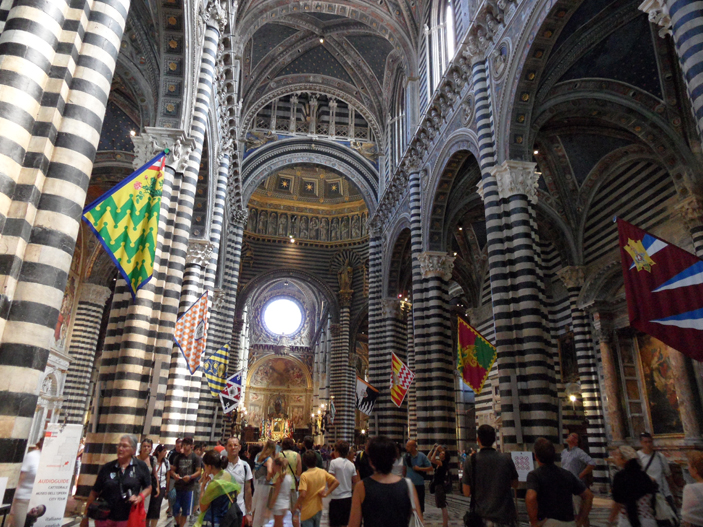 Siena che tra salite e discese svela i suoi tesori: musei, piazze, chiese, giardini e panorami mozzafiato. Famosa per il Palio del 2 luglio e 16 agosto, sfida tra le 17 contrade, con costumi medievali , che anima e sconvolge l'intera citta' con colori, grida, cavalli e passioni.